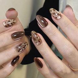 Popular Sweet Cool Leopard Print Usable Artificial Nail Caramel Brown Cat Eye Nail Art